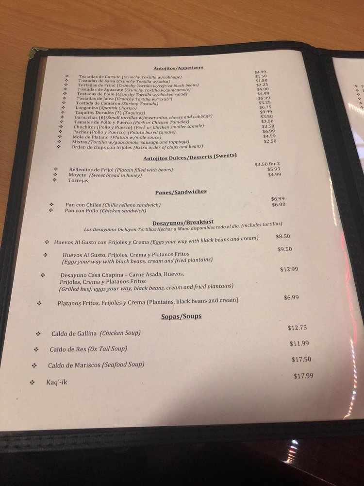 Casa Chapina Restaurant Menu (Update 2025)