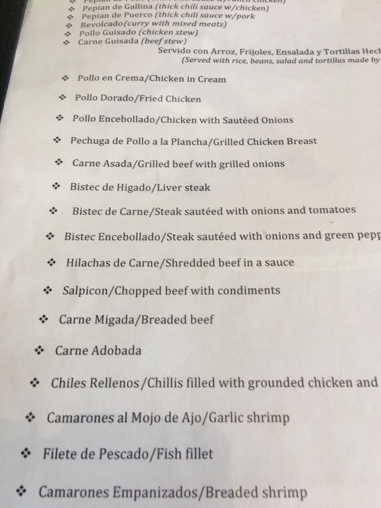 Liver steak. Served with rice and tortilla made by hand. Served with rice, beans, salad, and tortilla made by hand.